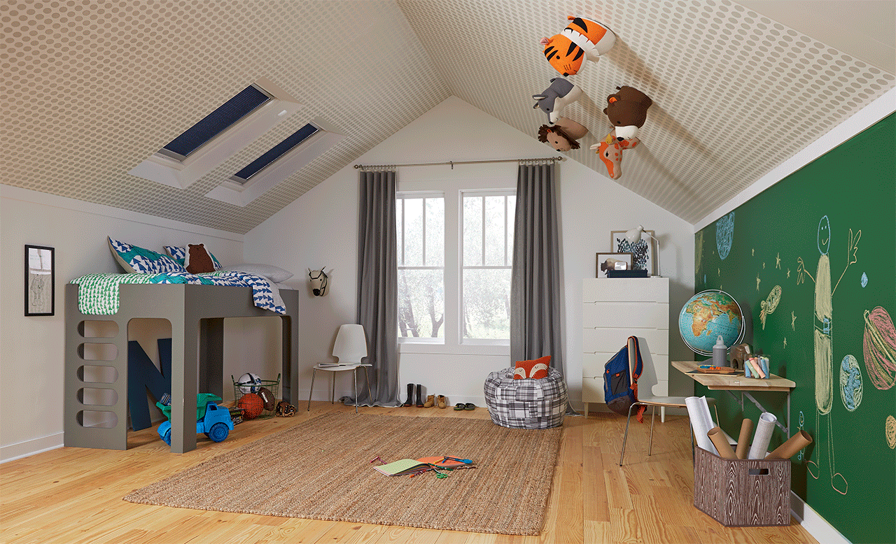 Yes, there is! VELUX offers over 60 different blind options, letting you select your amount of light control, style, and color that fits your bedroom décor. We recommend taking a look at our double-pleated light filtering shades and blackout shades for your bedroom.